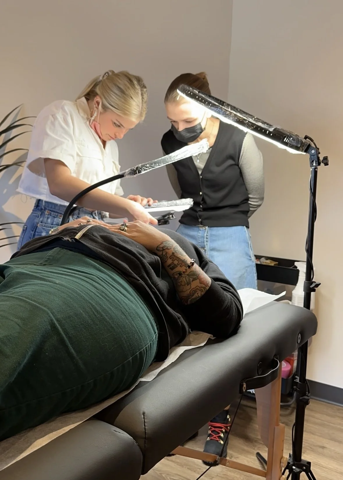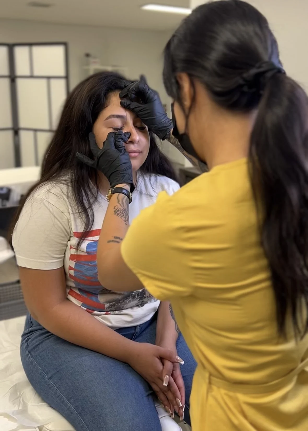 We work in modern nano-shading technique that heals in soft powder inside of brows, creating the illusion of fuller brows.